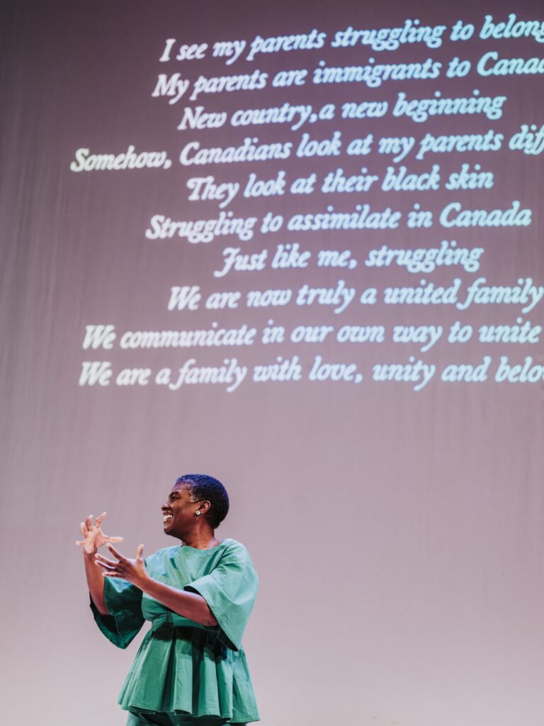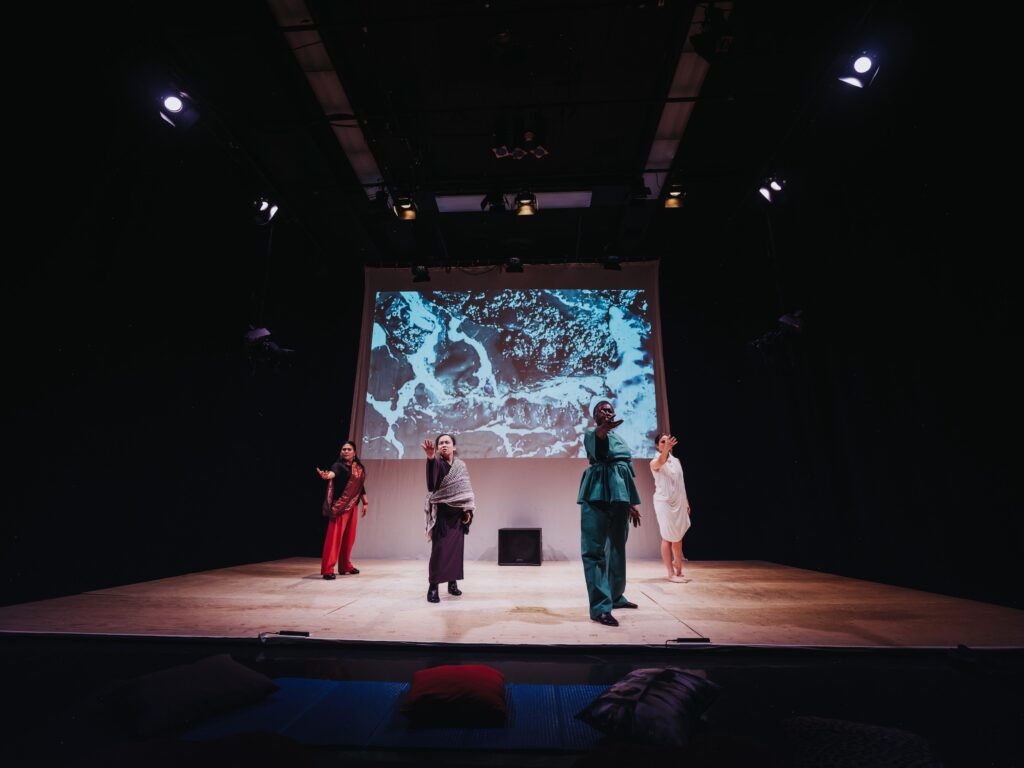 Speaking Vibrations is also the name of our uniquely immersive, genre-blending, defying and award-winning production (April Hubbard Creative Access Award, 2023; Corel Endowment Fund for the Arts Award, 2023; Outstanding Ensemble Performance, 2021). Bridging together themes of identity, interculturalism, migration, and Deaf and disability justice, throughout this piece four women explore their diasporic identities and origin stories and along the way, discover and connect with one another.